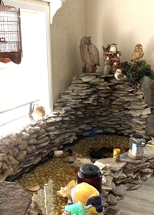 The man was on the side of the road, homeless and jobless. Papa picked him up, took him home, and for the next six months, the man lived with my in-laws while Papa tried to help the man get back on his feet. As part of his rehab, the man gave my in-laws a gift—he used his masonry skills to build a large waterfall pond in their living room. Complete with goldfish.
