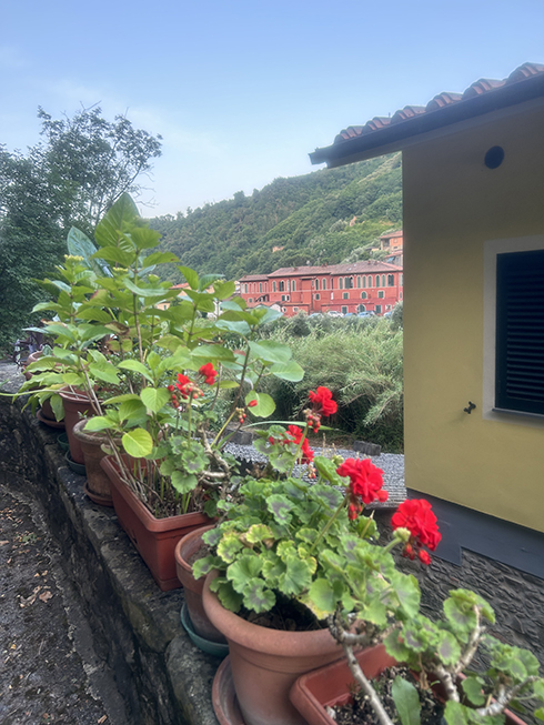 Relieved to be on land again, we noticed our surroundings. Three large stone buildings nestled under tall pine trees, surrounded by mountains and a clear rushing river. On the hill above us, about three kilometers away, was the bell tower of Collodi, the birthplace of Pinocchio. We learned we were in Pescia, the city of flowers and paper, within walking distance of the village of Lucca. “Welcome to Villagio Albergo San Lorenzo e Santa Carina.” Italy.