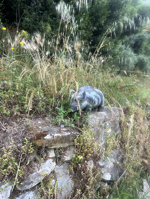 The path ran through a small orchard and along the river toward the village. There were wild flowers and rock walls and birds. The view down into the village was beautiful. I stopped a few times, mostly to take pictures, but once because we were startled by a small gray pig peeking out of the weeds growing over a low rock wall. Turns out the pig was actually a stone statue, pretty realistic looking when you’re running along not paying attention, but aside from him and a small wooden deer, we didn’t see any other wildlife. the run was a great start to the day. I was glad I’d given up the extra sleep.