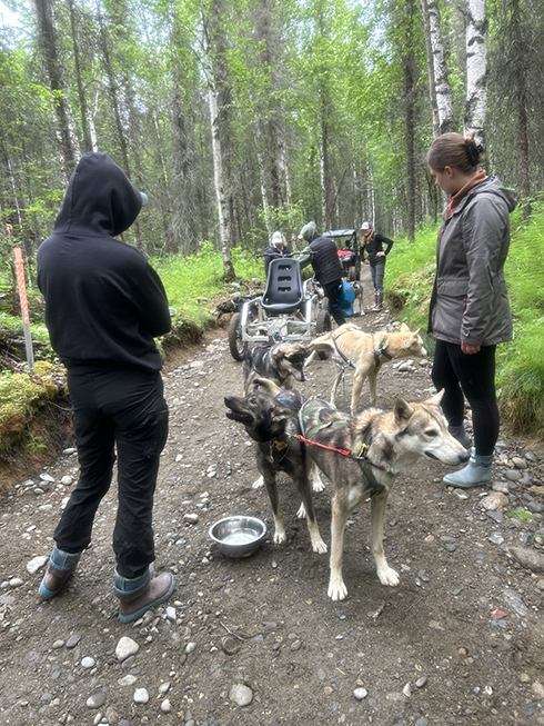 Youngest and I met our four-dog team and got a quick lesson on how to handle a summer sled. There are four things to remember:
